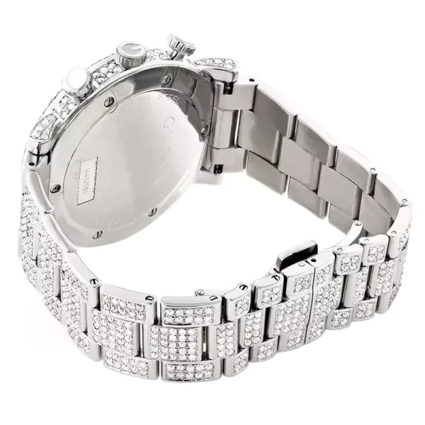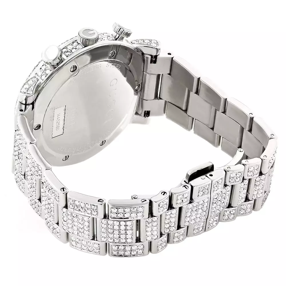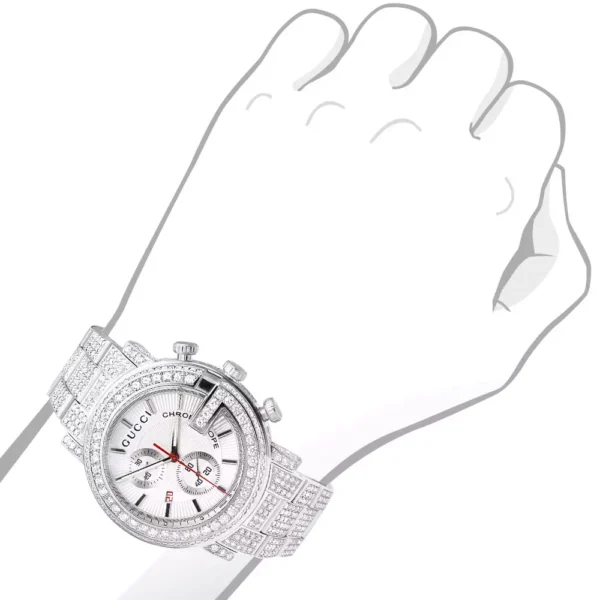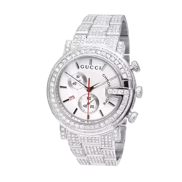 Iced Out Men’s Diamond Gucci G-Chrono Watch White Chronograph Dial 15ct YA101339